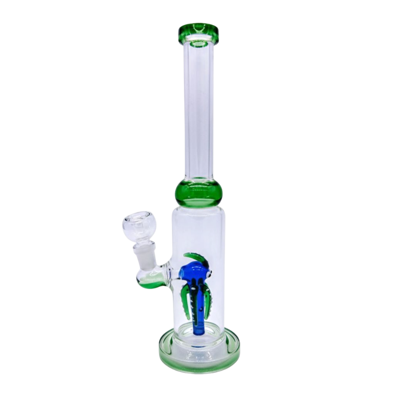 Libera al kraken en tus sesiones con el Bong Pulpo de 30 cm. Esta pieza única cuenta con un percolador de pulpo artístico que difunde el humo para fumadas suaves. Con acentos en verde vibrante, una junta de 14mm y un diseño de tubo recto, es el balance perfecto entre arte y funcionalidad.
