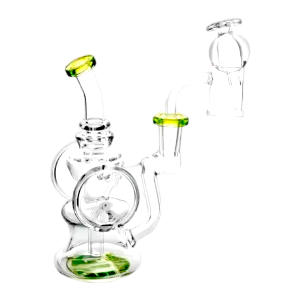 Kit Syfy Mini Rig 14 cm, ideal para dabs y extracciones. Incluye banger de cuarzo, carb cap y packaging especial para guardarlo o transportarlo.